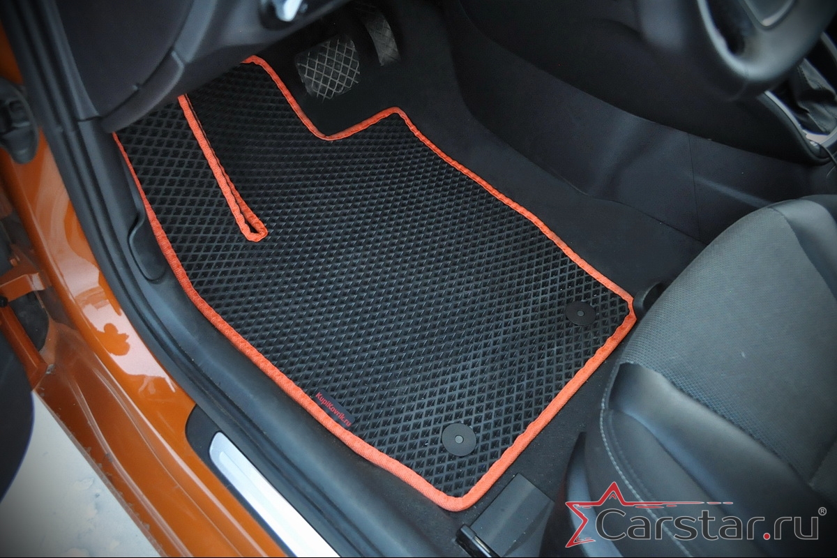 Коврики EVA надёжно крепятся с помощью оригинальных систем фиксации. Благодаря клипсам, а также липучке, коврики защищены от смещений, что обеспечивает комфорт и безопасность вождения. Максимальное удобство также достигается точными, улучшенными лекалами для каждого автомобиля.