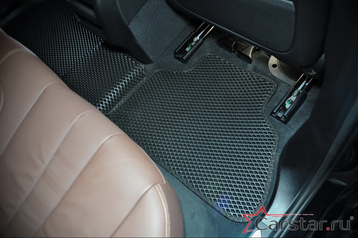 Автомобильные коврики EVA прекрасно подходят для всех существующих марок и моделей авто, здесь вы сможете заказать оптимальный аксессуар любого возможного цвета. По размерам они больше, чем стандартные резиновые коврики, поэтому покрывают максимальную площадь пола в салоне. А двойная система креплений (клипсы и липучки) позволяет надежно зафиксировать коврики в нужном месте.