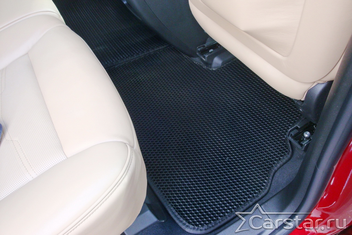 Толщина ковриков EVA составляет 10-12 мм. Глубина ячеек 7-8 мм. Такая толщина ковриков позволяет им служить довольно долго, не протираясь до 3 лет. А благодаря такой глубине ячеек коврик EVA площадью 1 кв.м. способен захватить около 3,5 л жидкости, сохраняя в чистоте вашу обувь и обивку салона.