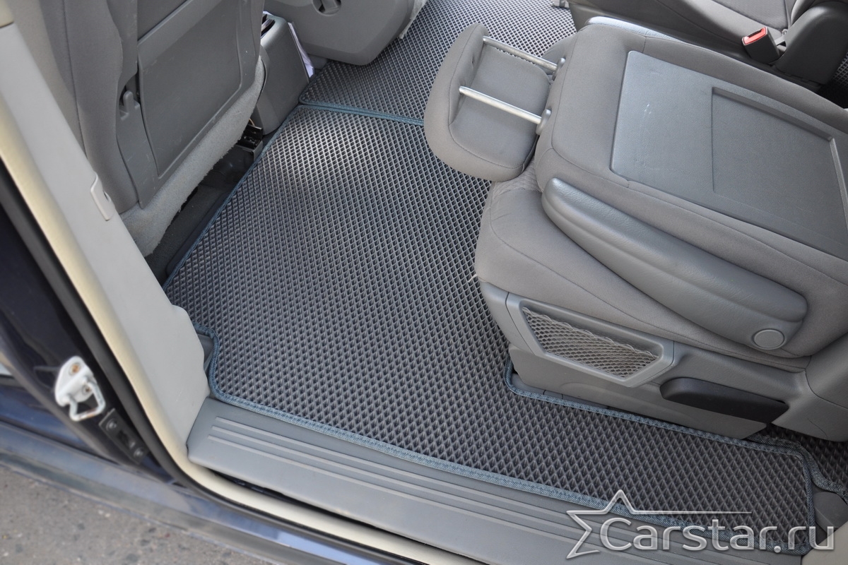 Автомобильные коврики EVA Chrysler Grand Voyager V (2008->) 2 ряд: кресла 1+1 не убираются в пол – это долговечные, удобные и универсальные аксессуары, которые помогут надежно защитить салон и багажник вашего авто от пыли, грязи и влаги в любое время года.