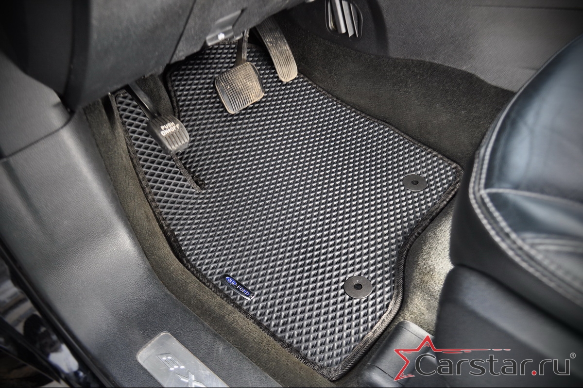 Автомобильные коврики EVA прекрасно подходят для всех существующих марок и моделей авто, здесь вы сможете заказать оптимальный аксессуар любого возможного цвета. По размерам они больше, чем стандартные резиновые коврики, поэтому покрывают максимальную площадь пола в салоне. А двойная система креплений (клипсы и липучки) позволяет надежно зафиксировать коврики в нужном месте.