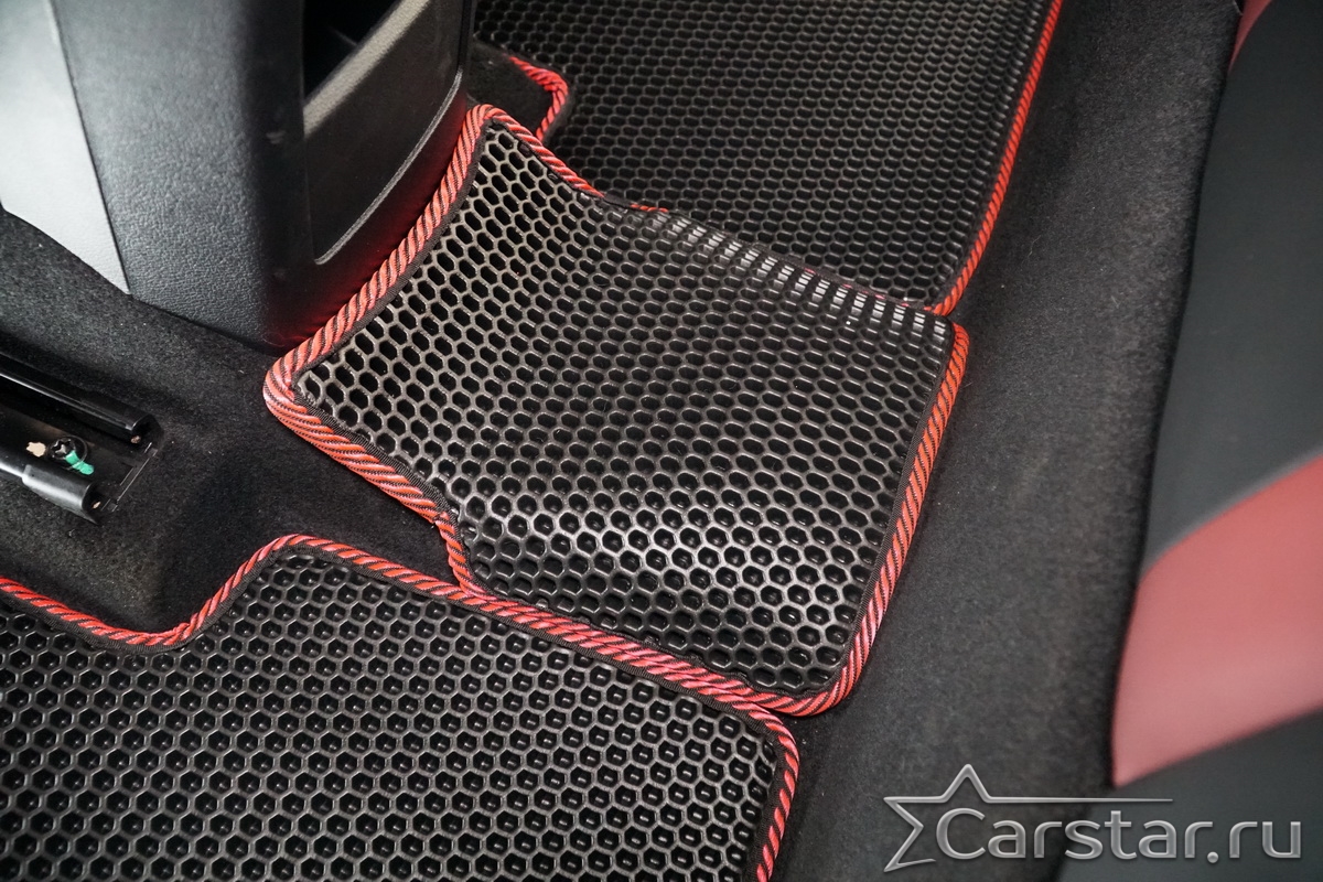 Толщина ковриков EVA составляет 10-12 мм. Глубина ячеек 7-8 мм. Такая толщина ковриков позволяет им служить довольно долго, не протираясь до 3 лет. А благодаря такой глубине ячеек коврик EVA площадью 1 кв.м. способен захватить около 3,5 л жидкости, сохраняя в чистоте вашу обувь и обивку салона.