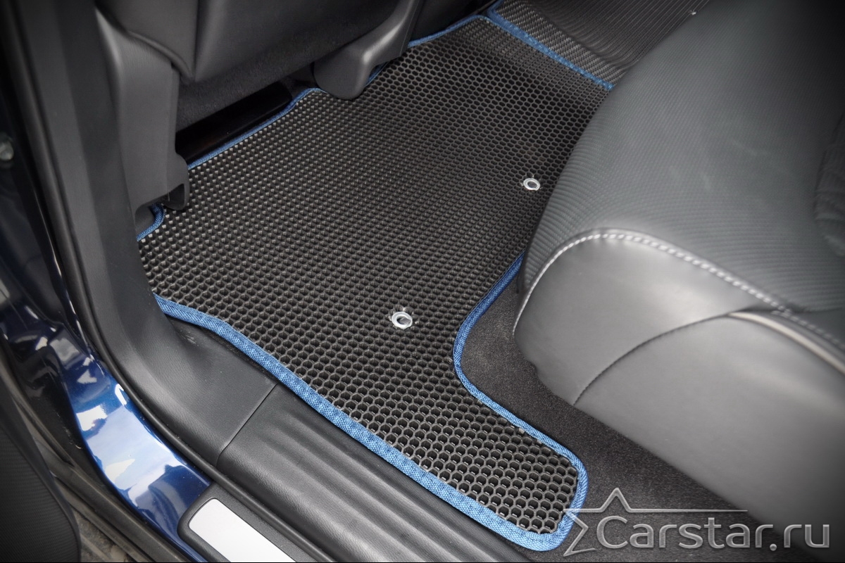 Коврики EVA надёжно крепятся с помощью оригинальных систем фиксации. Благодаря клипсам и липучке коврики защищены от смещений, что обеспечивает комфорт и безопасность вождения. Максимальное удобство также достигается точными, улучшенными лекалами для каждого автомобиля.
