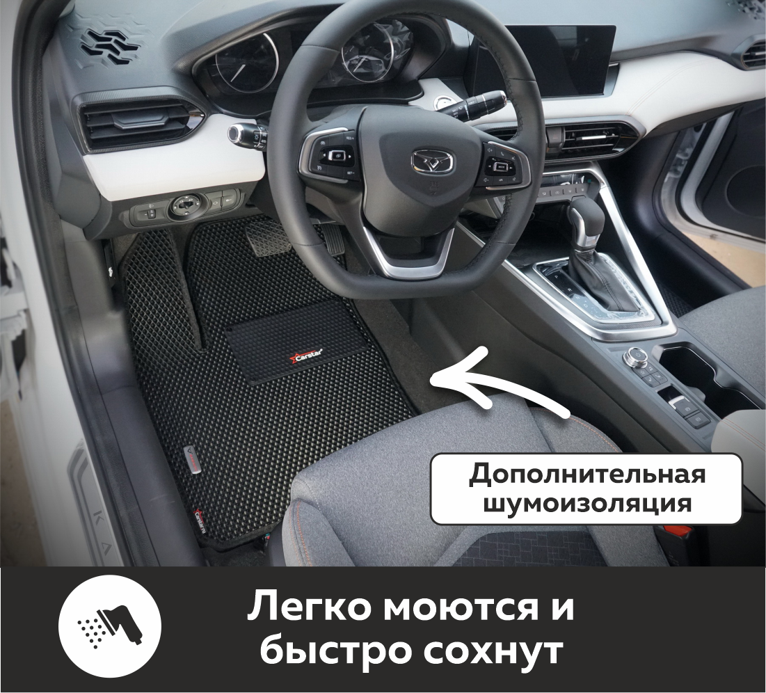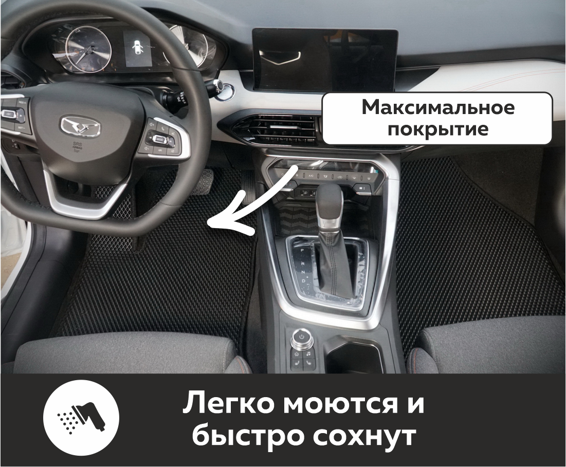 Автомобильные коврики EVA Kaiyi E5 (2021->) – это долговечные, удобные и универсальные аксессуары, которые помогут надежно защитить салон и багажник вашего авто от пыли, грязи и влаги в любое время года.