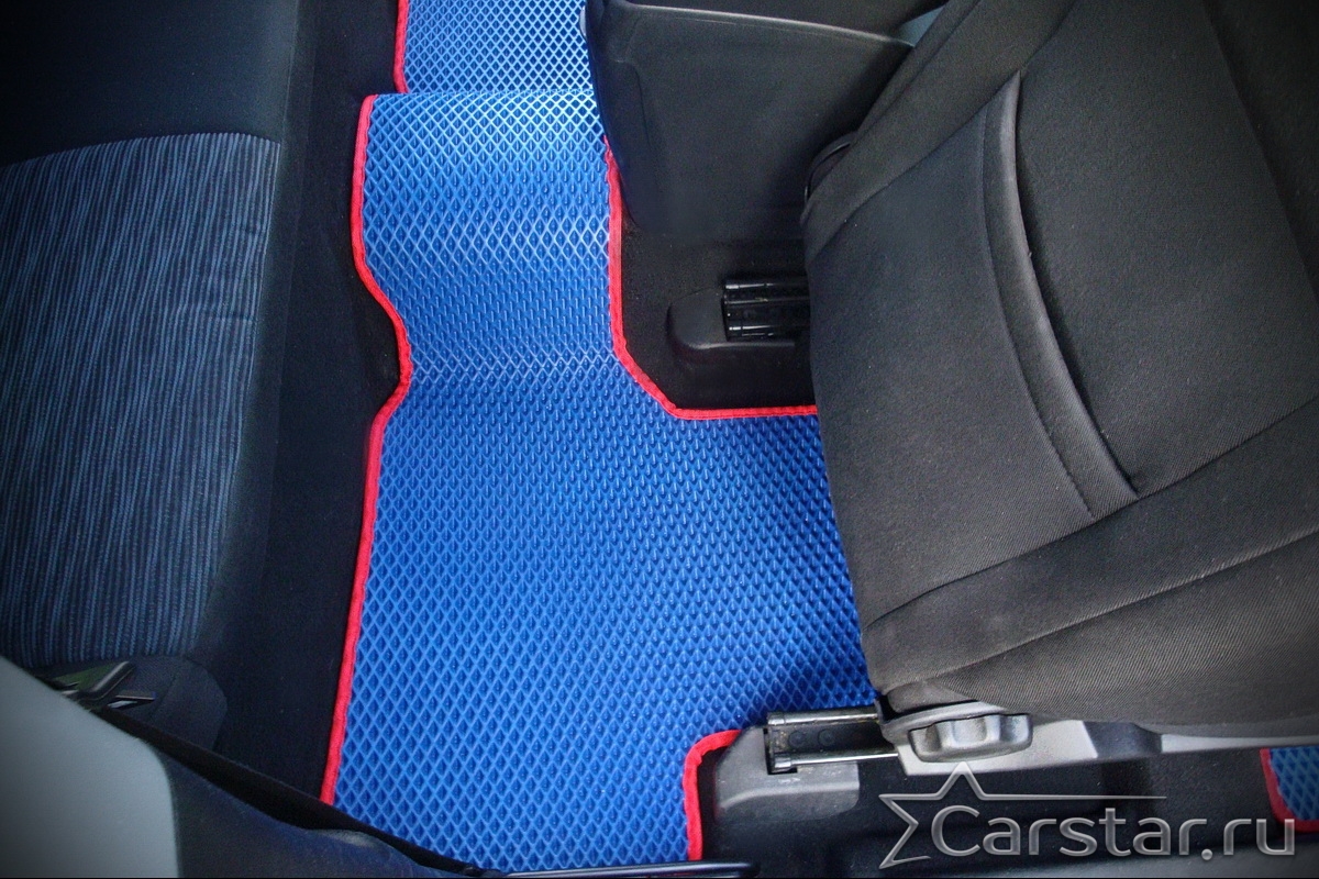 Толщина ковриков EVA составляет 10-12 мм. Глубина ячеек 7-8 мм. Такая толщина ковриков позволяет им служить довольно долго, не протираясь до 3 лет. А благодаря такой глубине ячеек коврик EVA площадью 1 кв.м. способен захватить около 3,5 л жидкости, сохраняя в чистоте вашу обувь и обивку салона.