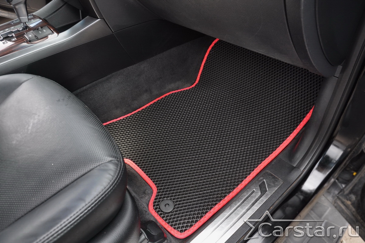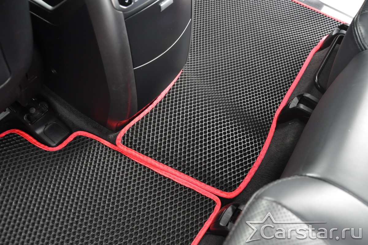 Толщина ковриков EVA составляет 10-12 мм. Глубина ячеек 7-8 мм. Такая толщина ковриков позволяет им служить довольно долго, не протираясь до 3 лет. А благодаря такой глубине ячеек коврик EVA площадью 1 кв.м. способен захватить около 3,5 л жидкости, сохраняя в чистоте вашу обувь и обивку салона.