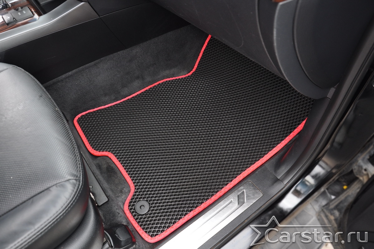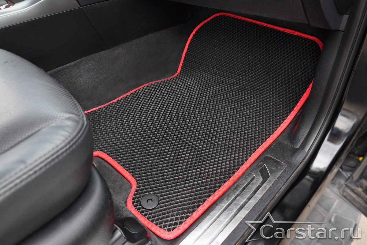 Автомобильные коврики EVA прекрасно подходят для всех существующих марок и моделей авто, здесь вы сможете заказать оптимальный аксессуар любого возможного цвета. По размерам они больше, чем стандартные резиновые коврики, поэтому покрывают максимальную площадь пола в салоне. А двойная система креплений (клипсы и липучки) позволяет надежно зафиксировать коврики в нужном месте.