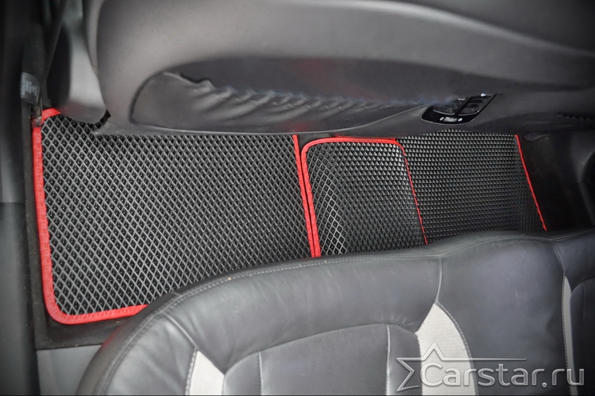 Толщина ковриков EVA составляет 10-12 мм. Глубина ячеек 7-8 мм. Такая толщина ковриков позволяет им служить довольно долго, не протираясь до 3 лет. А благодаря такой глубине ячеек коврик EVA площадью 1 кв.м. способен захватить около 3,5 л жидкости, сохраняя в чистоте вашу обувь и обивку салона.