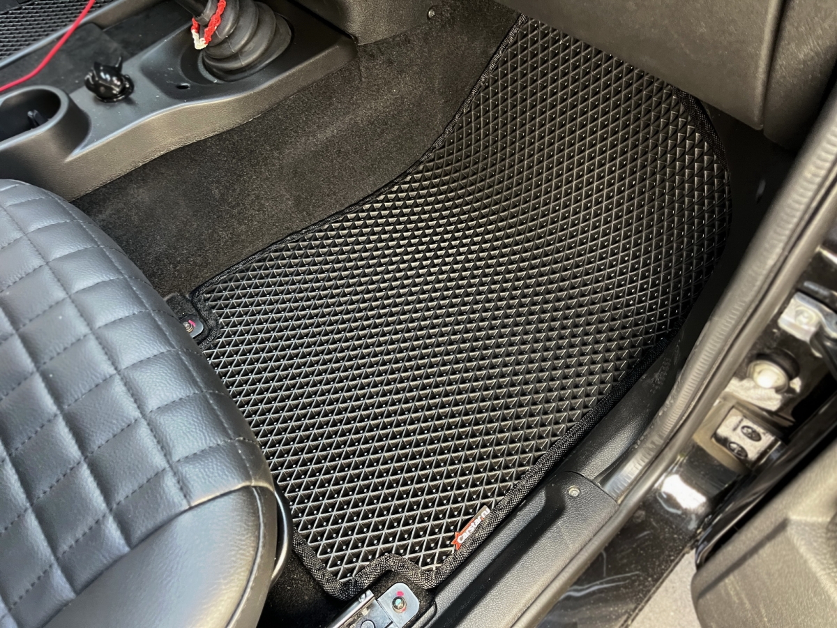 Толщина ковриков EVA составляет 10-12 мм. Глубина ячеек 7-8 мм. Такая толщина ковриков позволяет им служить довольно долго, не протираясь до 3 лет. А благодаря такой глубине ячеек коврик EVA площадью 1 кв.м. способен захватить около 3,5 л жидкости, сохраняя в чистоте вашу обувь и обивку салона.
