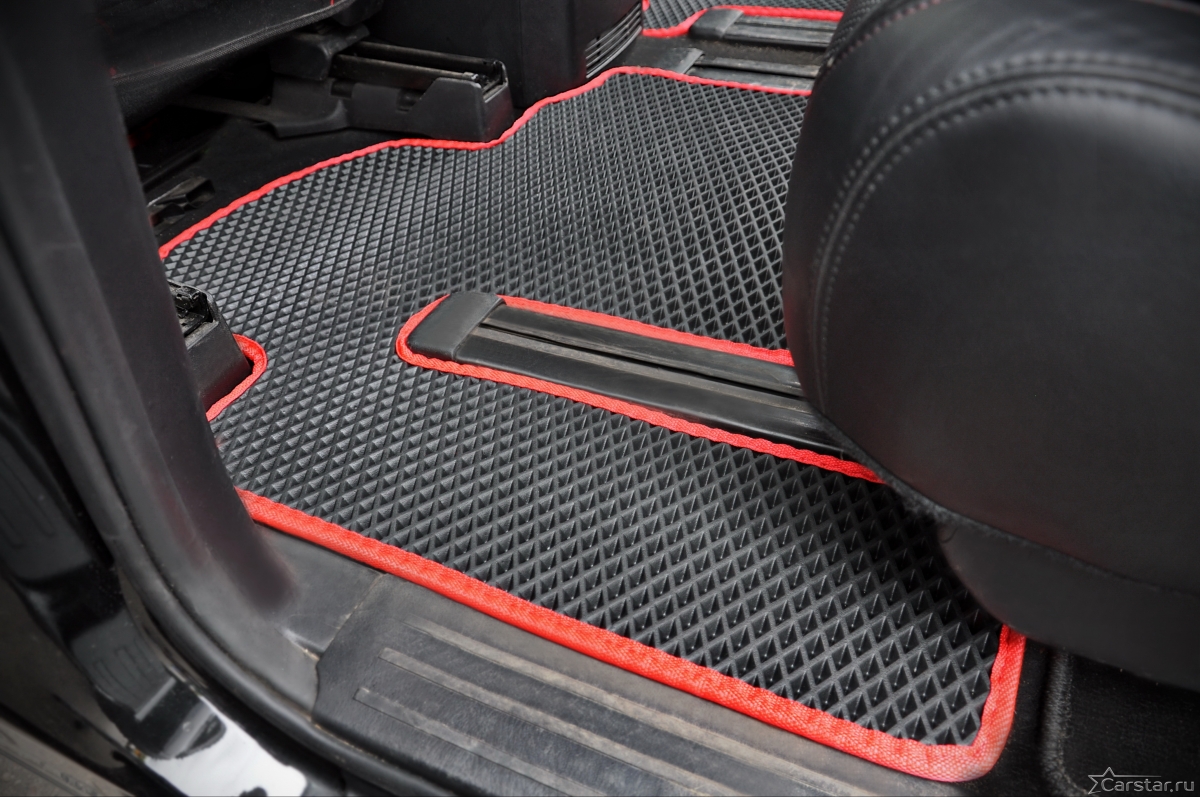 Толщина ковриков EVA составляет 10-12 мм. Глубина ячеек 7-8 мм. Такая толщина ковриков позволяет им служить довольно долго, не протираясь до 3 лет. А благодаря такой глубине ячеек коврик EVA площадью 1 кв.м. способен захватить около 3,5 л жидкости, сохраняя в чистоте вашу обувь и обивку салона.