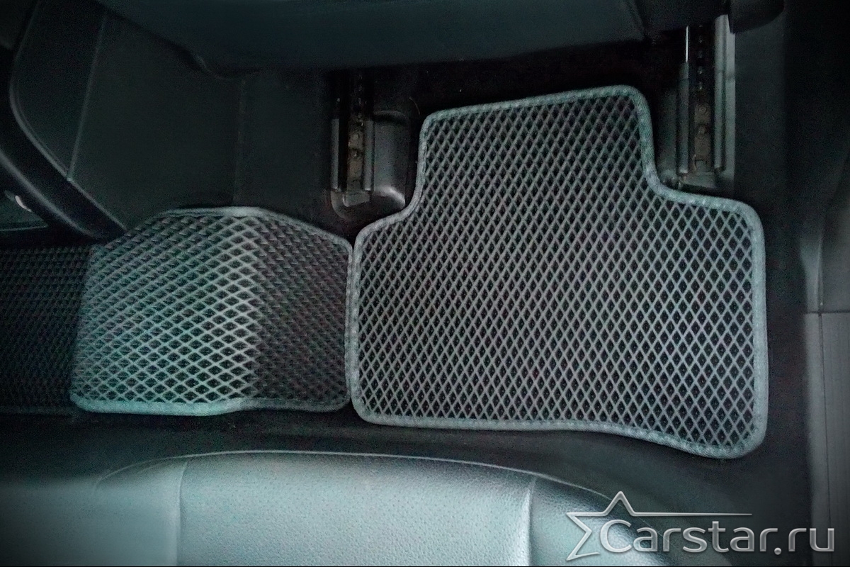 Толщина ковриков EVA составляет 10-12 мм. Глубина ячеек 7-8 мм. Такая толщина ковриков позволяет им служить довольно долго, не протираясь до 3 лет. А благодаря такой глубине ячеек коврик EVA площадью 1 кв.м. способен захватить около 3,5 л жидкости, сохраняя в чистоте вашу обувь и обивку салона.