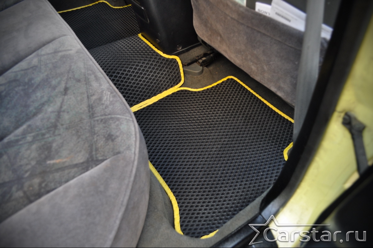 Толщина ковриков EVA составляет 10-12 мм. Глубина ячеек 7-8 мм. Такая толщина ковриков позволяет им служить довольно долго, не протираясь до 3 лет. А благодаря такой глубине ячеек коврик EVA площадью 1 кв.м. способен захватить около 3,5 л жидкости, сохраняя в чистоте вашу обувь и обивку салона.
