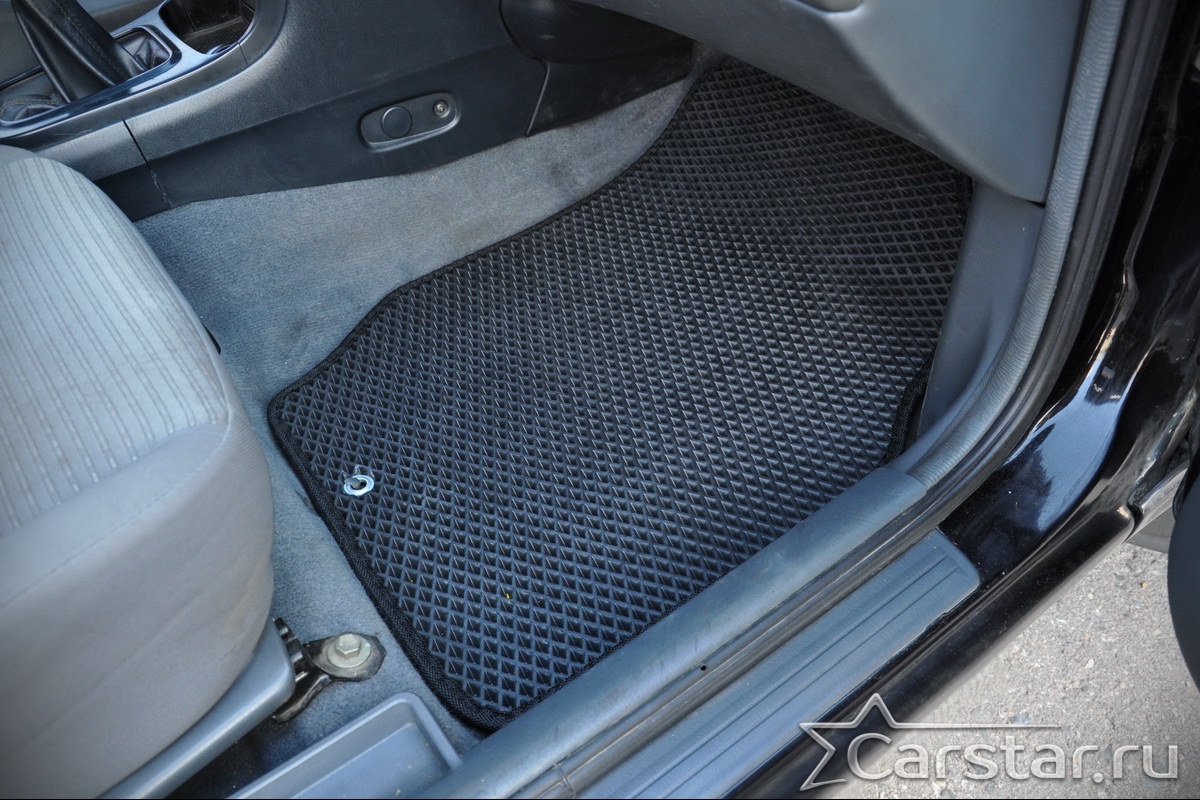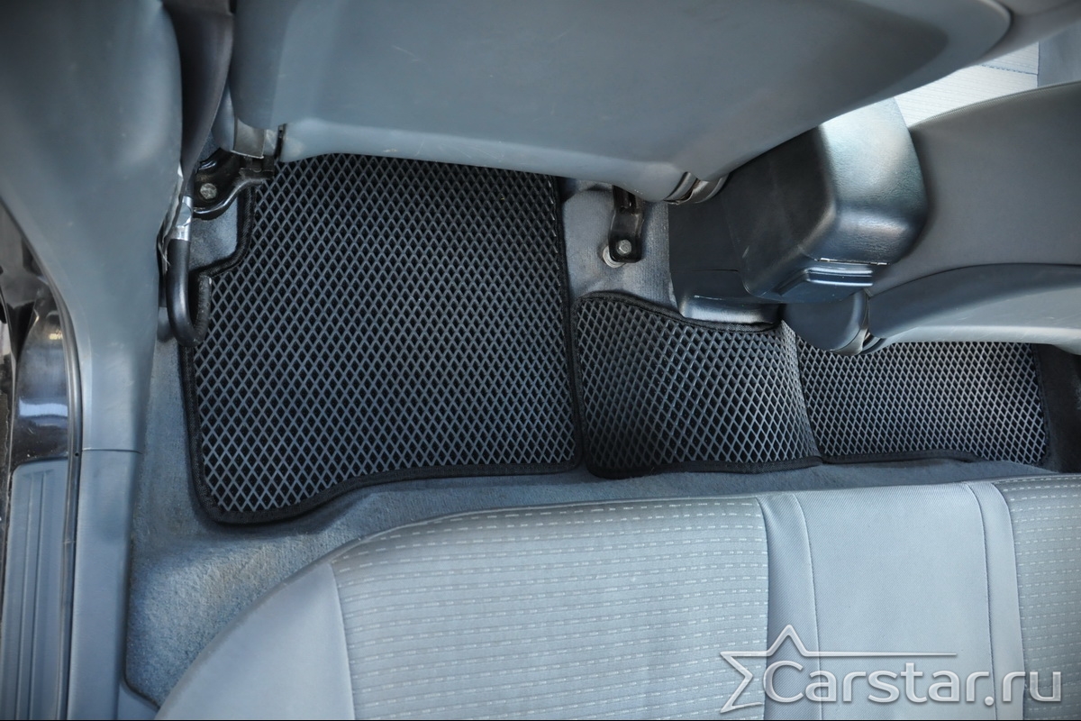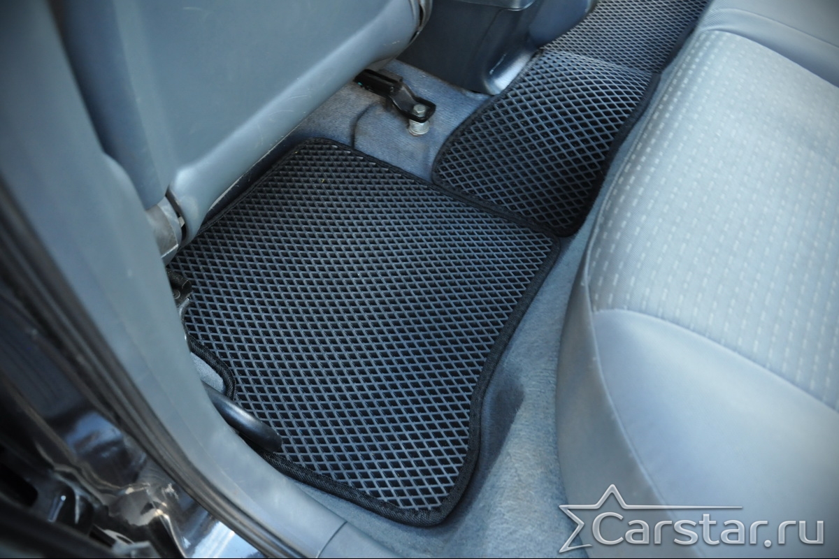 Толщина ковриков EVA составляет 10-12 мм. Глубина ячеек 7-8 мм. Такая толщина ковриков позволяет им служить довольно долго, не протираясь до 3 лет. А благодаря такой глубине ячеек коврик EVA площадью 1 кв.м. способен захватить около 3,5 л жидкости, сохраняя в чистоте вашу обувь и обивку салона.
