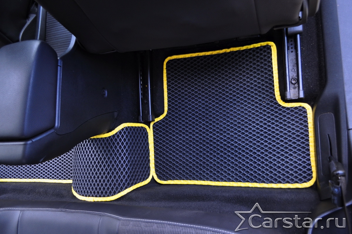 Толщина ковриков EVA составляет 10-12 мм. Глубина ячеек 7-8 мм. Такая толщина ковриков позволяет им служить довольно долго, не протираясь до 3 лет. А благодаря такой глубине ячеек коврик EVA площадью 1 кв.м. способен захватить около 3,5 л жидкости, сохраняя в чистоте вашу обувь и обивку салона.