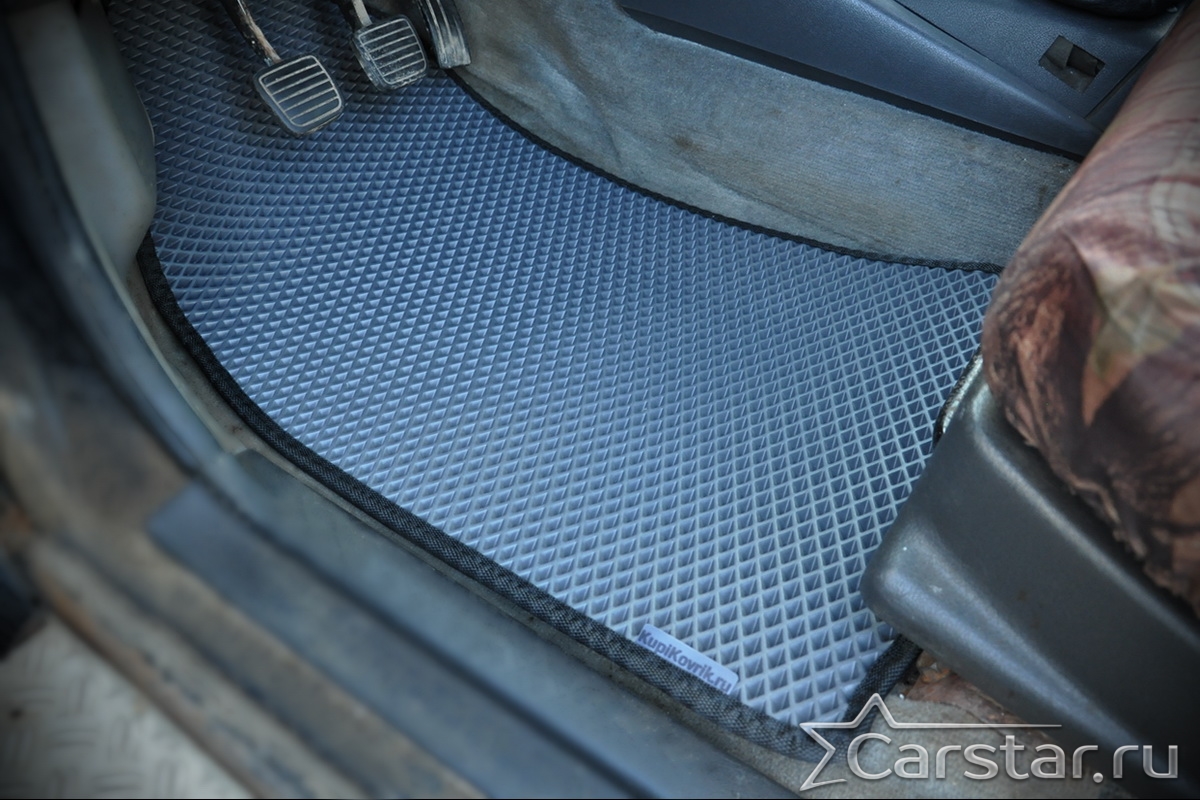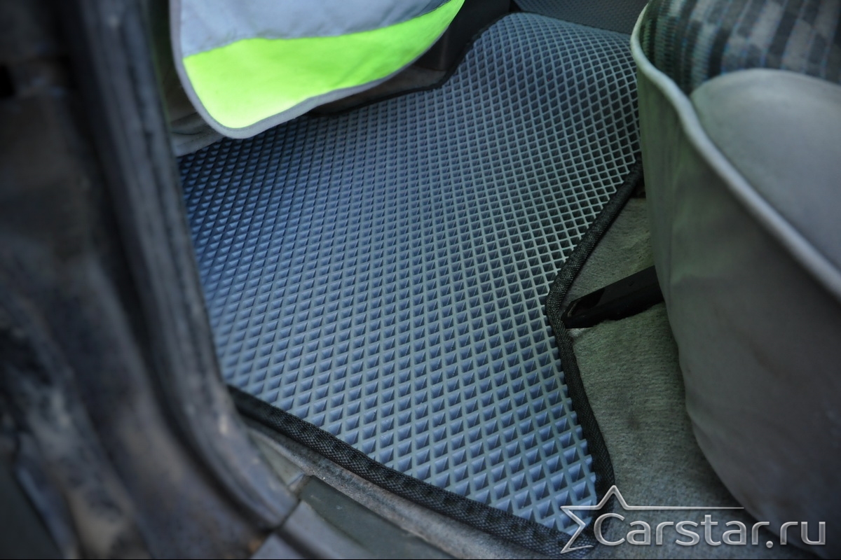 Толщина ковриков EVA составляет 10-12 мм. Глубина ячеек 7-8 мм. Такая толщина ковриков позволяет им служить довольно долго, не протираясь до 3 лет. А благодаря такой глубине ячеек коврик EVA площадью 1 кв.м. способен захватить около 3,5 л жидкости, сохраняя в чистоте вашу обувь и обивку салона.