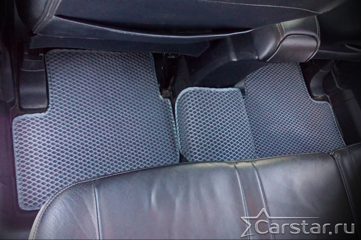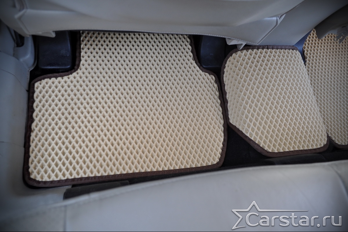 Толщина ковриков EVA составляет 10-12 мм. Глубина ячеек 7-8 мм. Такая толщина ковриков позволяет им служить довольно долго, не протираясь до 3 лет. А благодаря такой глубине ячеек коврик EVA площадью 1 кв.м. способен захватить около 3,5 л жидкости, сохраняя в чистоте вашу обувь и обивку салона.