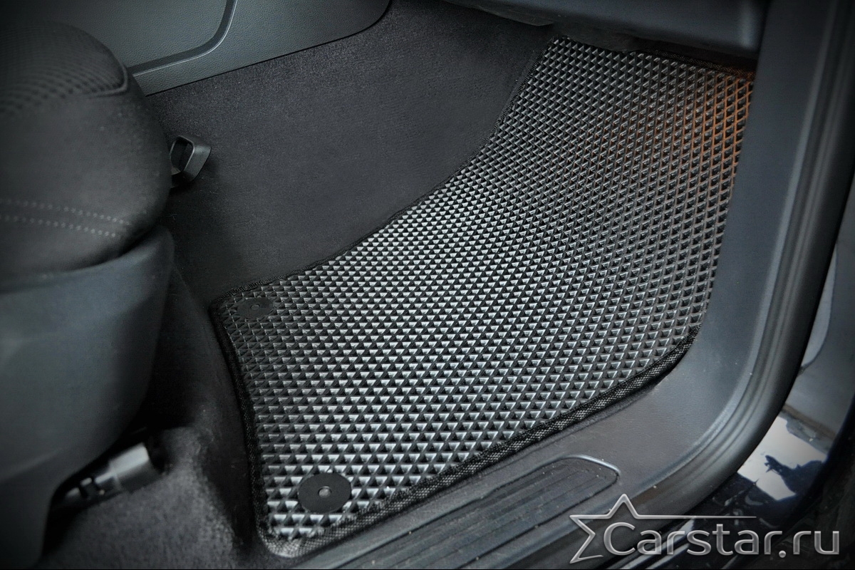 Коврики EVA надёжно крепятся с помощью оригинальных систем фиксации. Благодаря клипсам и липучке коврики защищены от смещений, что обеспечивает комфорт и безопасность вождения. Максимальное удобство также достигается точными, улучшенными лекалами для каждого автомобиля.