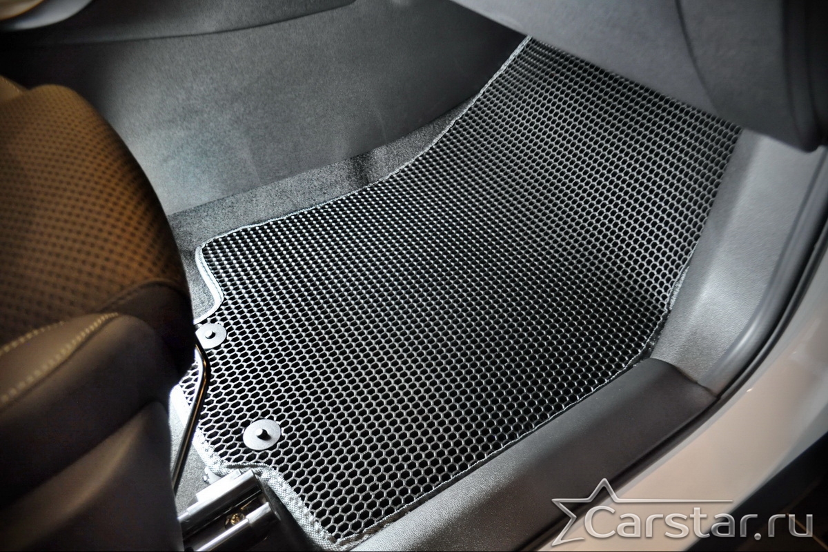 Коврики EVA надёжно крепятся с помощью оригинальных систем фиксации. Благодаря клипсам и липучке коврики защищены от смещений, что обеспечивает комфорт и безопасность вождения. Максимальное удобство также достигается точными, улучшенными лекалами для каждого автомобиля.