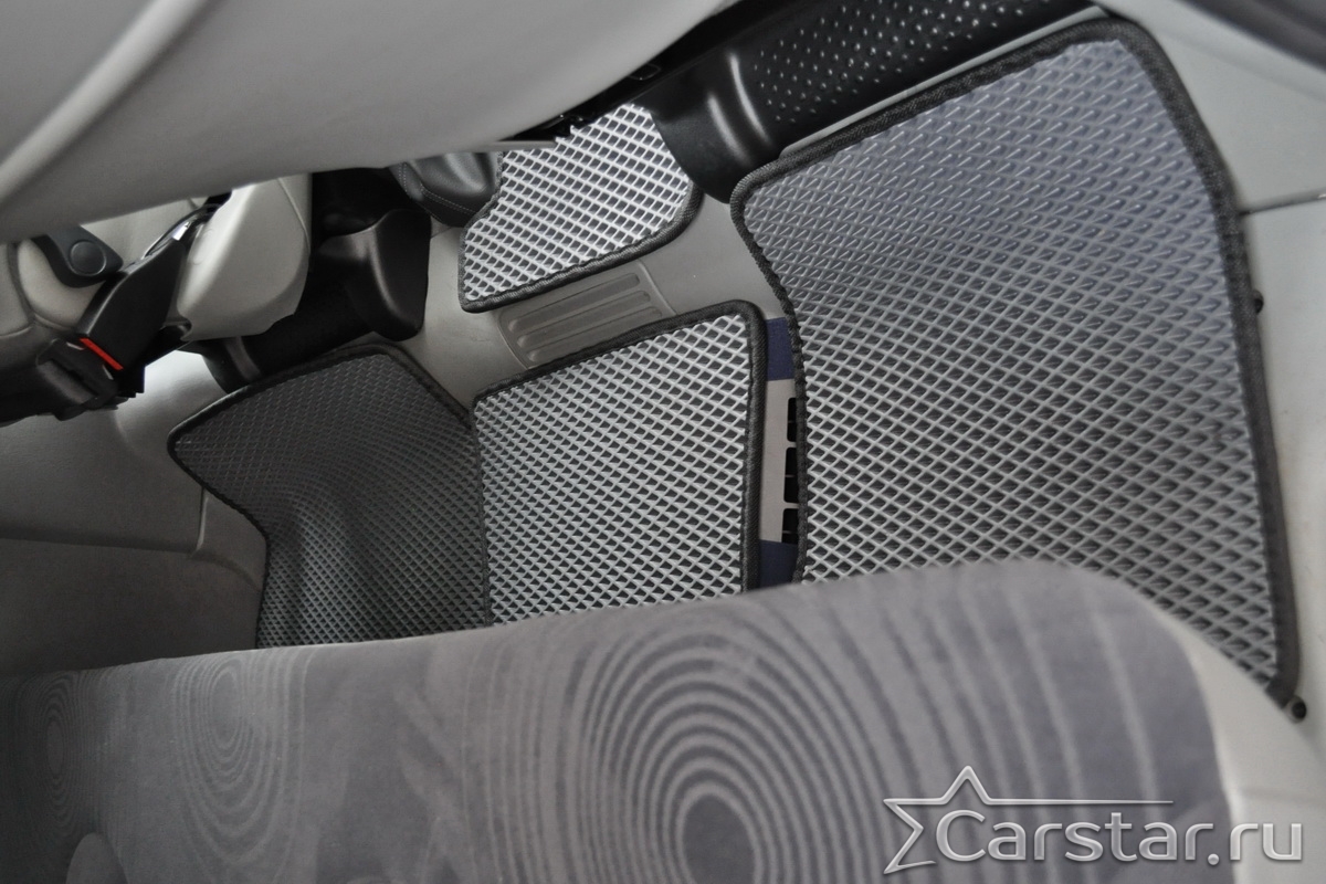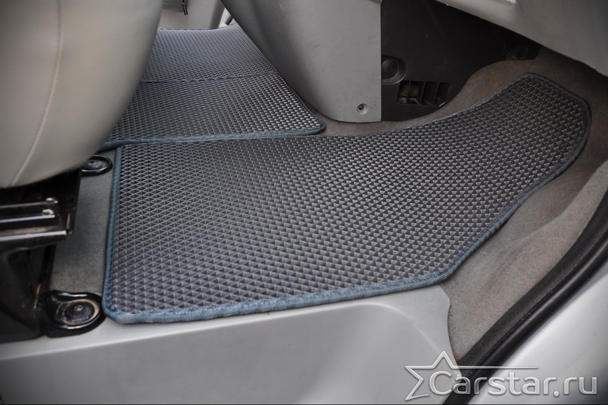 Толщина ковриков EVA составляет 10-12 мм. Глубина ячеек 7-8 мм. Такая толщина ковриков позволяет им служить довольно долго, не протираясь до 3 лет. А благодаря такой глубине ячеек коврик EVA площадью 1 кв.м. способен захватить около 3,5 л жидкости, сохраняя в чистоте вашу обувь и обивку салона.