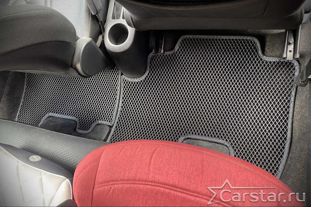 Толщина ковриков EVA составляет 10-12 мм. Глубина ячеек 7-8 мм. Такая толщина ковриков позволяет им служить довольно долго, не протираясь до 3 лет. А благодаря такой глубине ячеек коврик EVA площадью 1 кв.м. способен захватить около 3,5 л жидкости, сохраняя в чистоте вашу обувь и обивку салона.