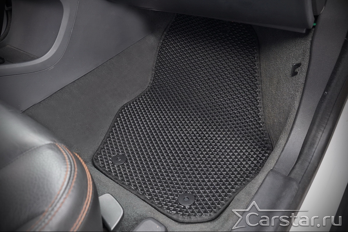 Коврики EVA надёжно крепятся с помощью оригинальных систем фиксации. Благодаря клипсам и липучке коврики защищены от смещений, что обеспечивает комфорт и безопасность вождения. Максимальное удобство также достигается точными, улучшенными лекалами для каждого автомобиля.