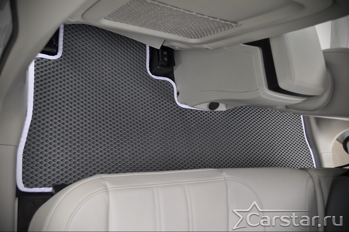 Текстильные коврики надёжно крепятся с помощью оригинальных систем фиксации. Обратная сторона имеет противоскользящее покрытие, что обеспечивает защиту от смещений и безопасность. Максимальное удобство достигается точными лекалами.