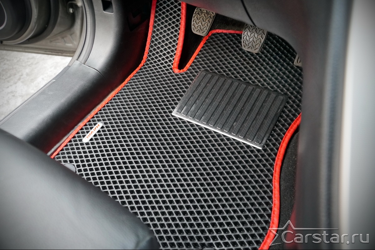Текстильные коврики надёжно крепятся с помощью оригинальных систем фиксации. Обратная сторона имеет противоскользящее покрытие, что обеспечивает защиту от смещений и безопасность. Максимальное удобство достигается точными лекалами.