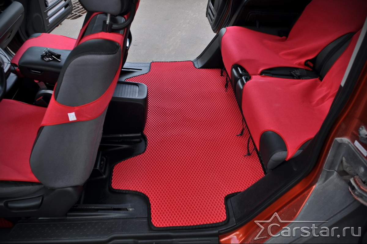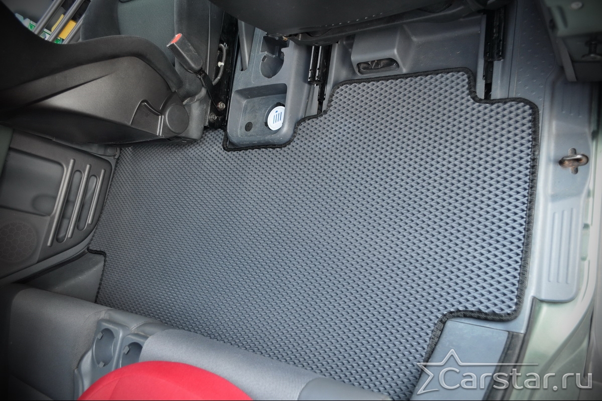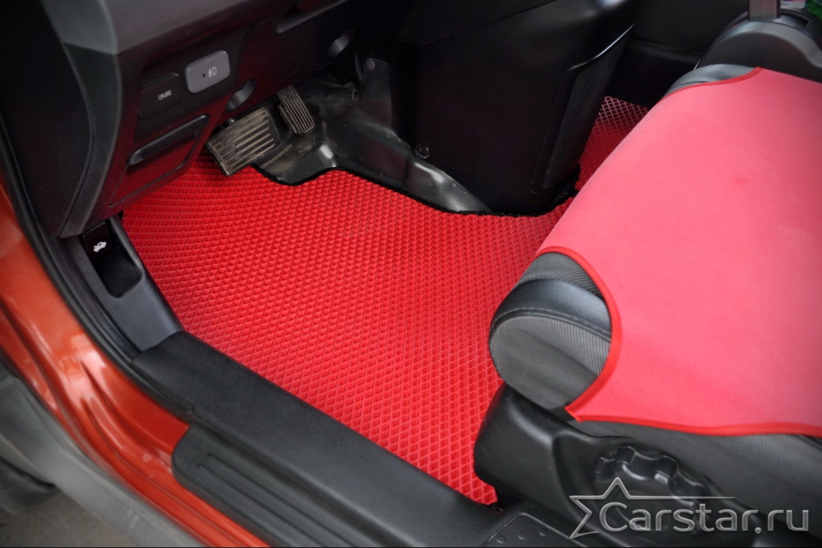 Текстильные коврики надёжно крепятся с помощью оригинальных систем фиксации. Обратная сторона имеет противоскользящее покрытие, что обеспечивает защиту от смещений и безопасность. Максимальное удобство достигается точными лекалами.