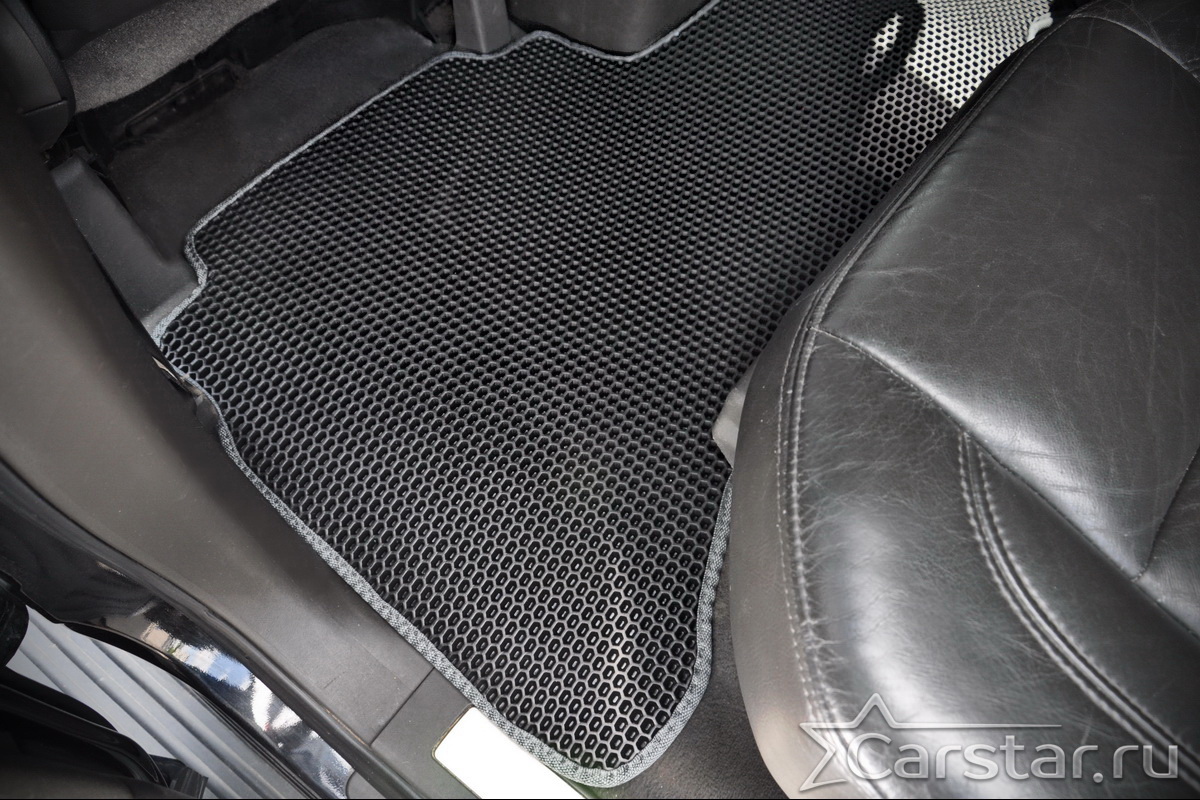 Текстильные коврики надёжно крепятся с помощью оригинальных систем фиксации. Обратная сторона имеет противоскользящее покрытие, что обеспечивает защиту от смещений и безопасность. Максимальное удобство достигается точными лекалами.