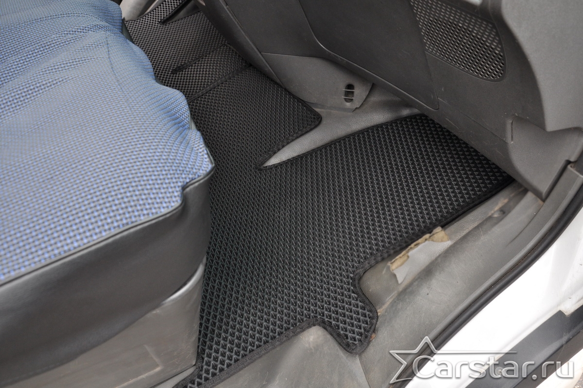Приятный на ощупь густой плотный ворс текстильных ковриков придаст салону роскошный вид. Широкой выбор цветовой палитры ковролина и окантовки коврика не оставит равнодушным ни одного искушенного автолюбителя.