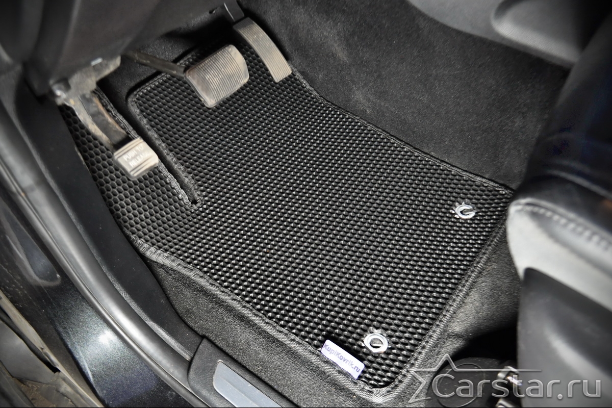 Текстильные коврики надёжно крепятся с помощью оригинальных систем фиксации. Обратная сторона имеет противоскользящее покрытие, что обеспечивает защиту от смещений и безопасность. Максимальное удобство достигается точными лекалами.