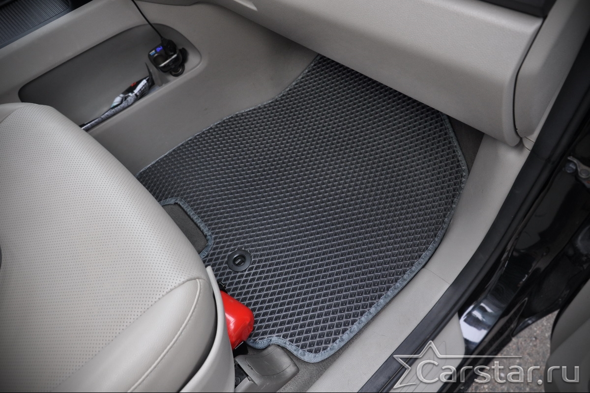 Текстильные коврики надёжно крепятся с помощью оригинальных систем фиксации. Обратная сторона имеет противоскользящее покрытие, что обеспечивает защиту от смещений и безопасность. Максимальное удобство достигается точными лекалами.