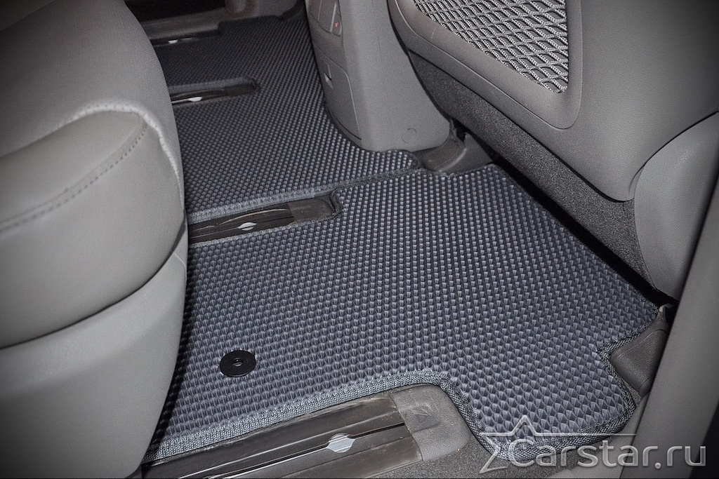 Текстильные коврики надёжно крепятся с помощью оригинальных систем фиксации. Обратная сторона имеет противоскользящее покрытие, что обеспечивает защиту от смещений и безопасность. Максимальное удобство достигается точными лекалами.