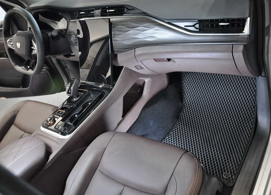 Текстильные коврики надёжно крепятся с помощью оригинальных систем фиксации. Обратная сторона имеет противоскользящее покрытие, что обеспечивает защиту от смещений и безопасность. Максимальное удобство достигается точными лекалами.