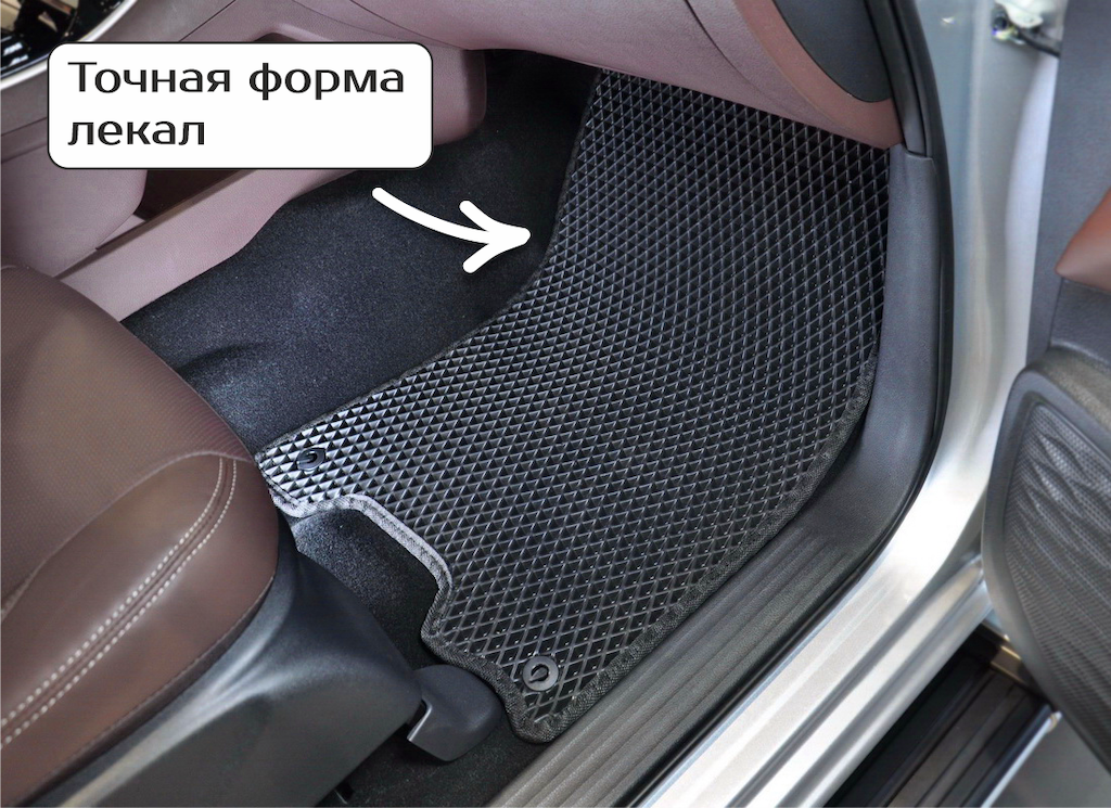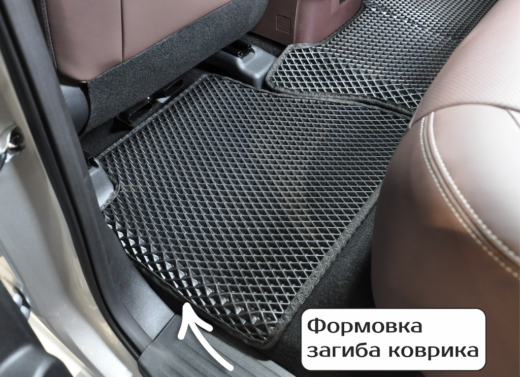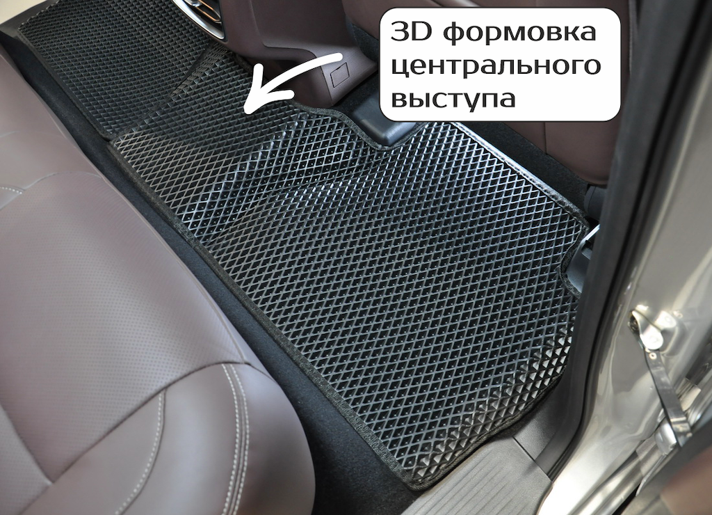Нижняя часть ковра изготавливается из термопластичной резины с шипами 2-3 мм по всей поверхности, что предотвращает скольжение коврика по салону автомобиля.