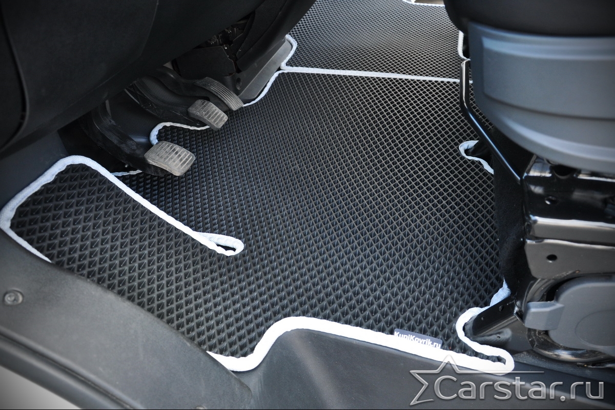 Текстильные коврики надёжно крепятся с помощью оригинальных систем фиксации. Обратная сторона имеет противоскользящее покрытие, что обеспечивает защиту от смещений и безопасность. Максимальное удобство достигается точными лекалами.