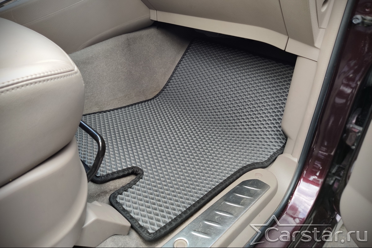 Текстильные коврики надёжно крепятся с помощью оригинальных систем фиксации. Обратная сторона имеет противоскользящее покрытие, что обеспечивает защиту от смещений и безопасность. Максимальное удобство достигается точными лекалами.