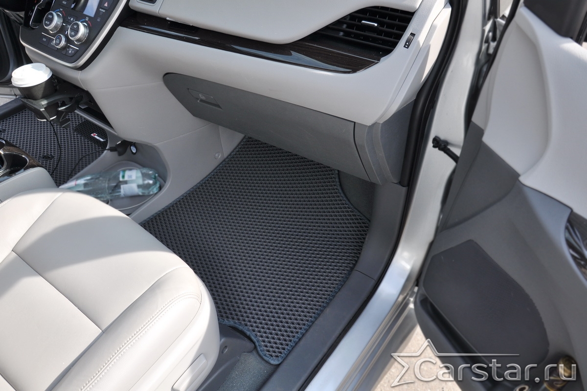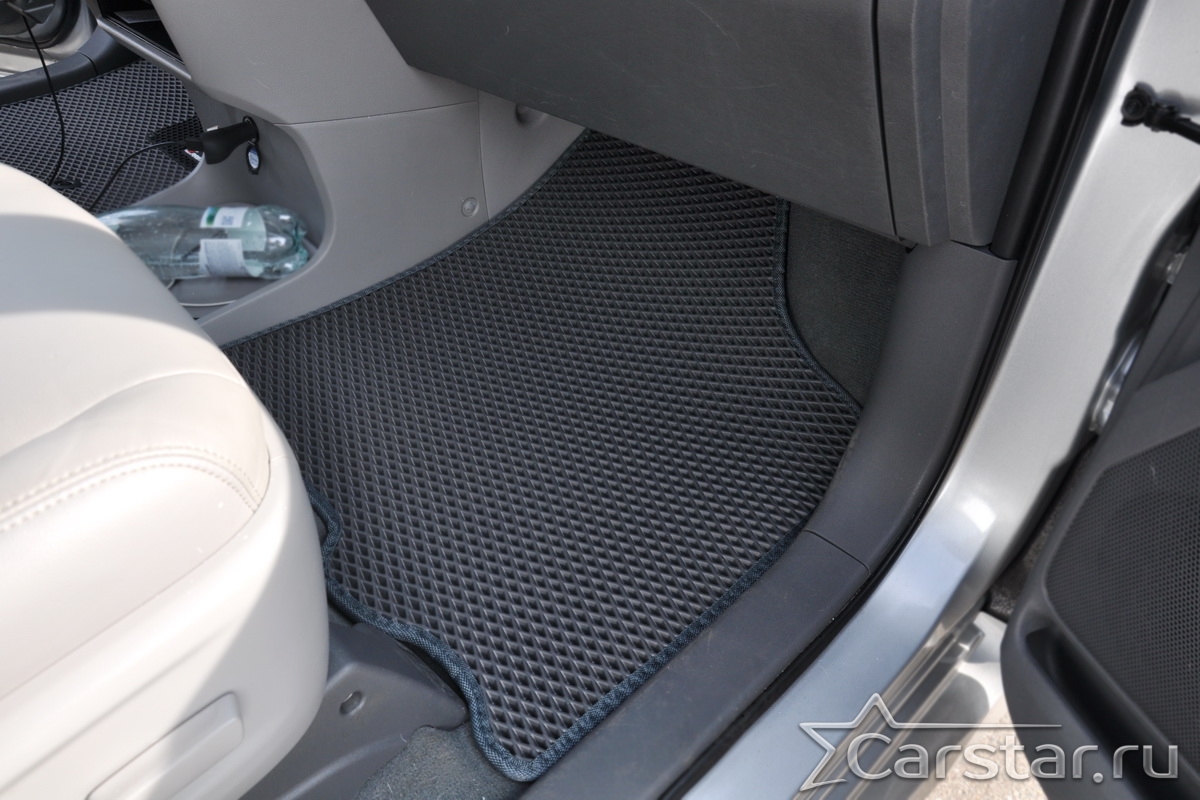 Текстильные коврики надёжно крепятся с помощью оригинальных систем фиксации. Обратная сторона имеет противоскользящее покрытие, что обеспечивает защиту от смещений и безопасность. Максимальное удобство достигается точными лекалами.