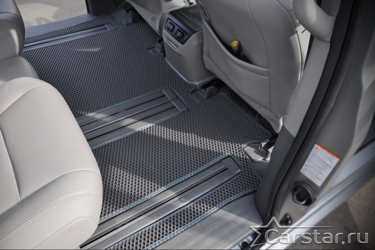 Текстильные автомобильные коврики Toyota Sienna III 7 мест (2010-2020) – это классический аксессуар, который обеспечит салону автомобиля неизменную чистоту, порядок и уют. Компания Carstar предлагает изделия из качественного ковролина в сочетании с полипропиленовым основанием на шипах, такая комбинация делает их прочными и водонепроницаемыми.